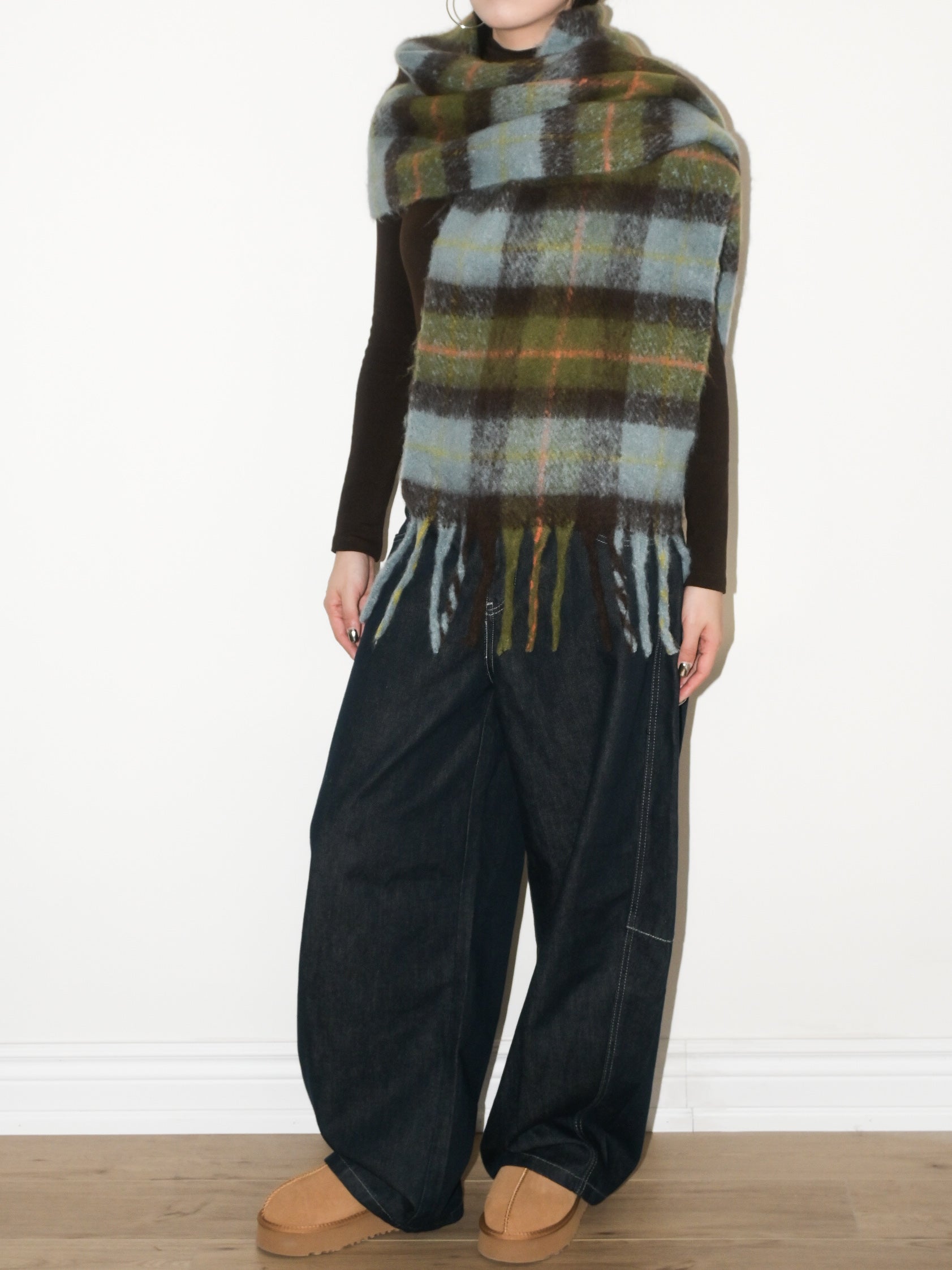 Plaid Fringe Wool Scarf